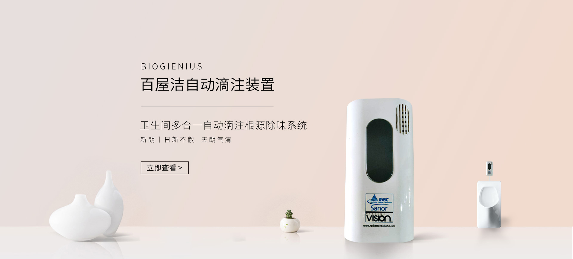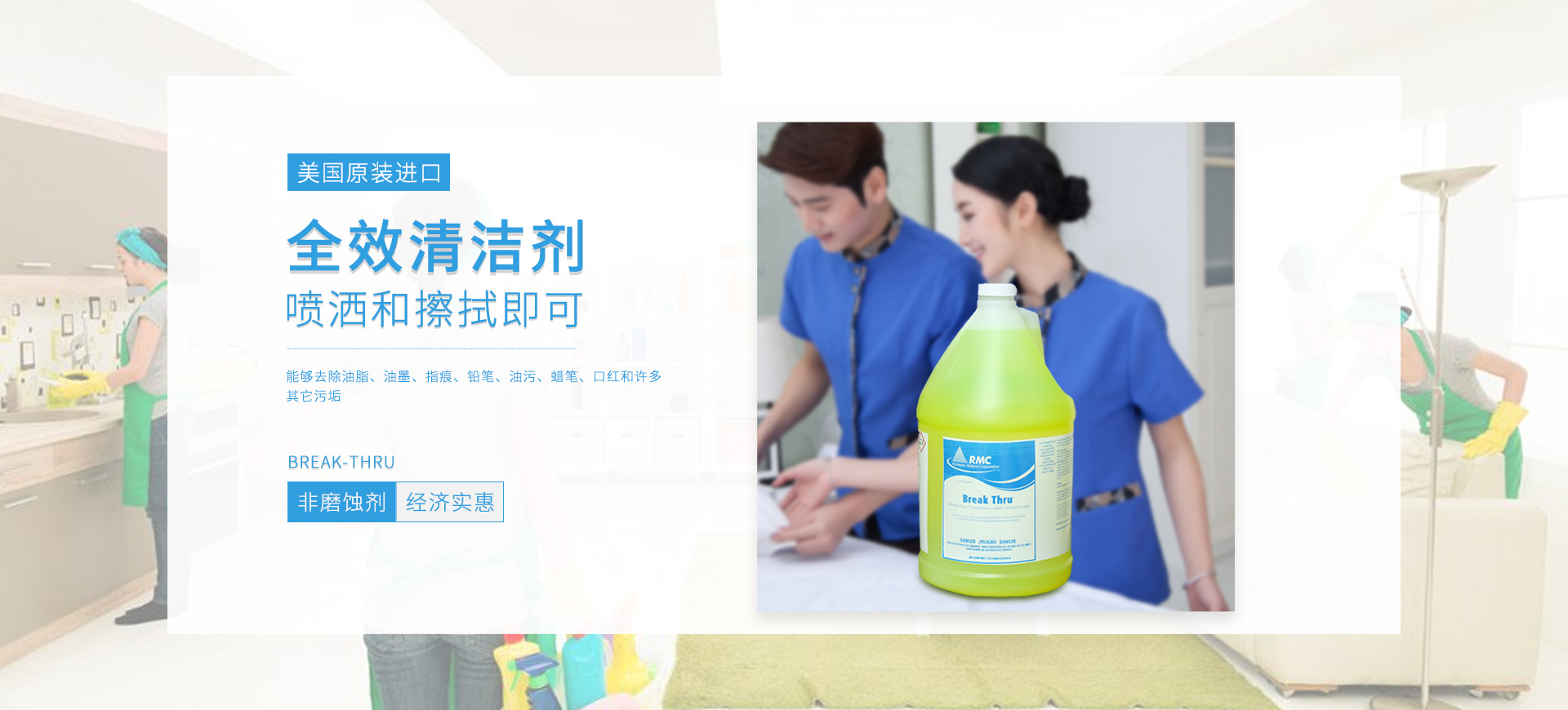 新朗環(huán)境自2015年起與美國具百年歷史的跨國企業(yè)RMC(Rochester Midland Corporation)合作, 進(jìn)口 RMC用于機(jī)械制造、交通運輸、航天航空、石油化工、食品禽肉乳制品加工等工業(yè)生產(chǎn)制造行業(yè)的專業(yè)清洗、滅菌系列產(chǎn)品,以及酒店、CBD大廈、學(xué)校(包括幼稚園)、醫(yī)療機(jī)構(gòu)、百貨商場、養(yǎng)殖業(yè)、餐飲業(yè)等商用行業(yè)清潔、消毒系列產(chǎn)品,還有專用于各個行業(yè)單位“廁所革命”的公共衛(wèi)生間根源除味第5代SANOR?衛(wèi)生間自動滴管系統(tǒng)、第6代百屋潔SIOGIENIUS?電子控制衛(wèi)生間自動滴注系統(tǒng)等系列產(chǎn)品項目。